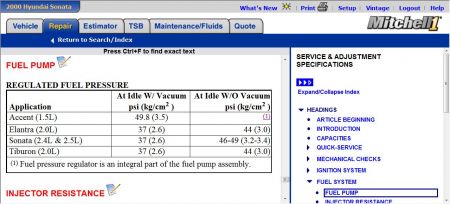 FUEL PRESSURE TEST