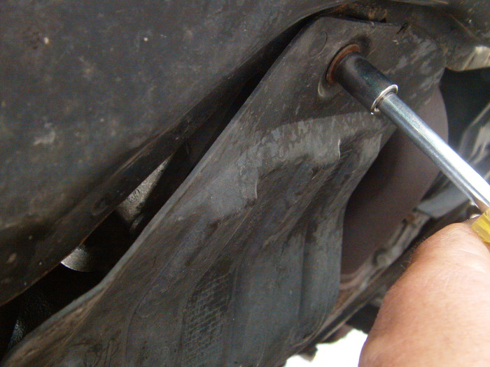 13)- Install back the oil pan splash cover, the side cover, the wheel, and give a road test.