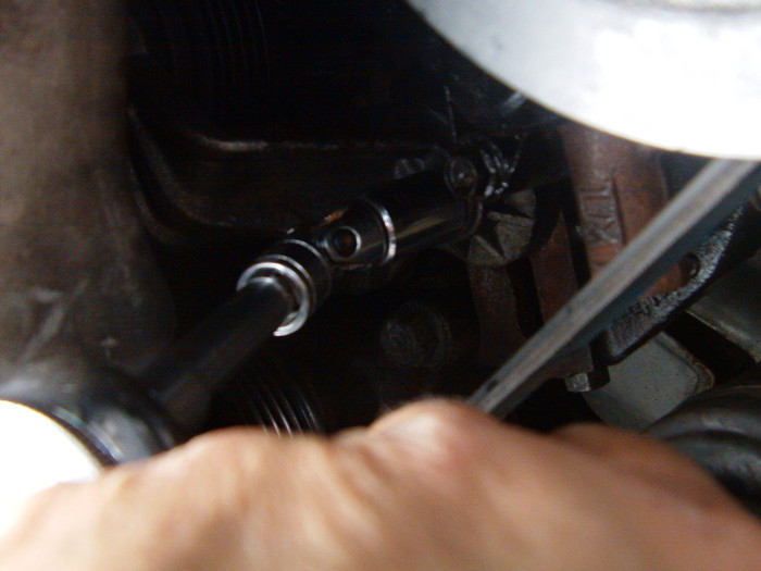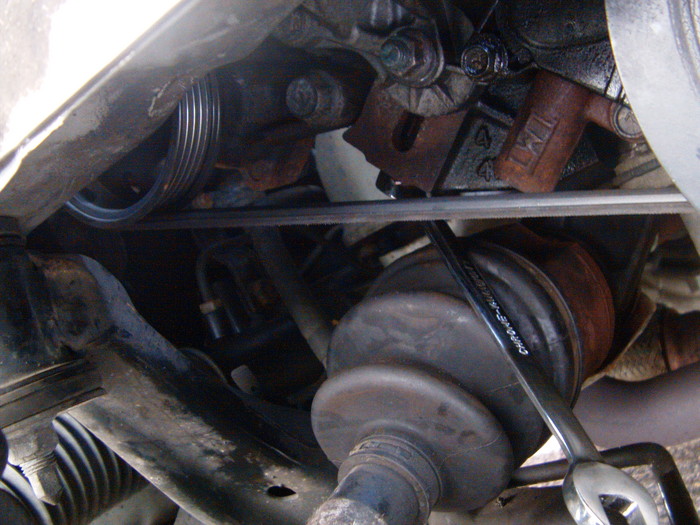 8)- Release the tension bolt enough to remove easily the belt, try to release it the most you can, because the new belt will need lots of free space to be installed, and giving them short space will give you hard times. The bracket bolt must be released only enough to be loose, no more than two turns, just enough to make it free.