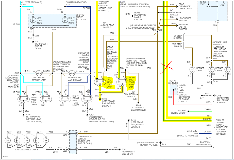 I attached the rear lamp wiring schematic below. I highlighted the wires that are relevant for the rear as well as which fuses to check.