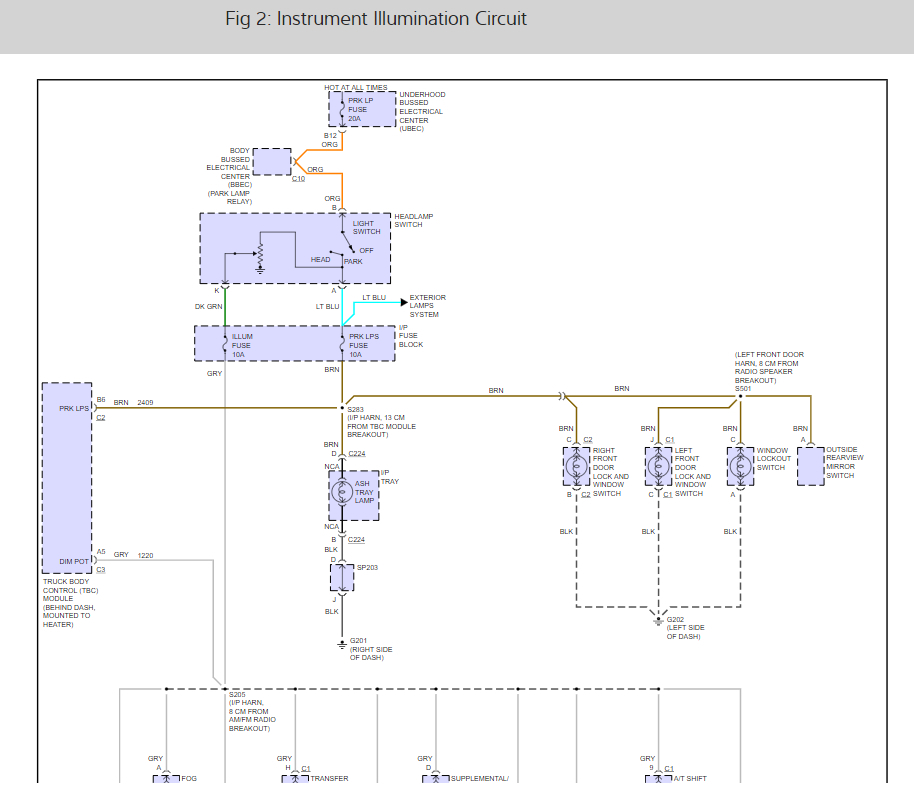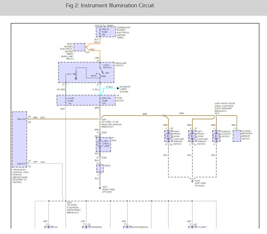 Inside my gauge cluster speedometer numbers do not light up. In the back of my truck the license plate lights do not come on. My running lights do not come on in the back, but my brake lights work. My reverse lights work, my blinkers work, but I cannot figure out where the problem is. I checked my fuses, I checked my relays. I do not understand where the problem is.