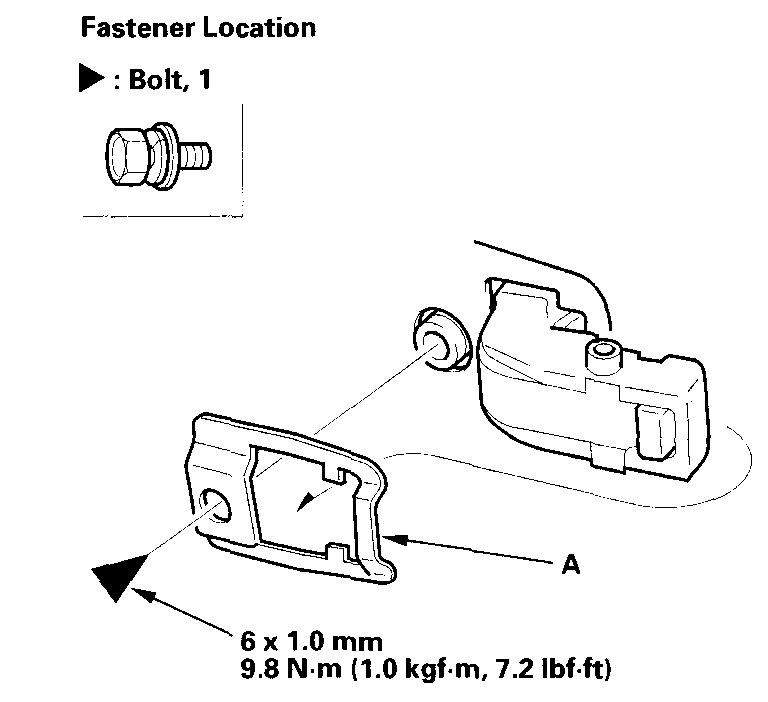 6. Remove the bolt, slide the lock cylinder protector (A) rearward, then remove the lock cylinder switch (for some models), lock cylinder, and lock cylinder protector as an assembly.