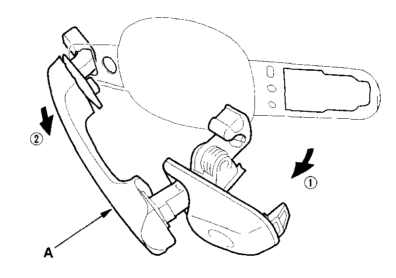 10. While pulling the outer handle (A), remove the handle from the holes in the door panel. Take care not to scratch the door.