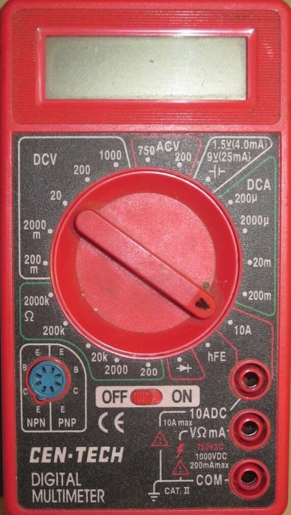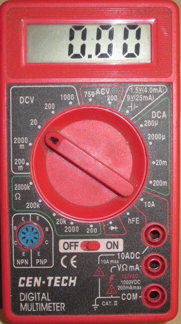 Photo 1 shows the inexpensive digital meter from Harbor Freight Tools. Home Depot has an identical one in yellow. These can also be found at Walmart and any hardware store.