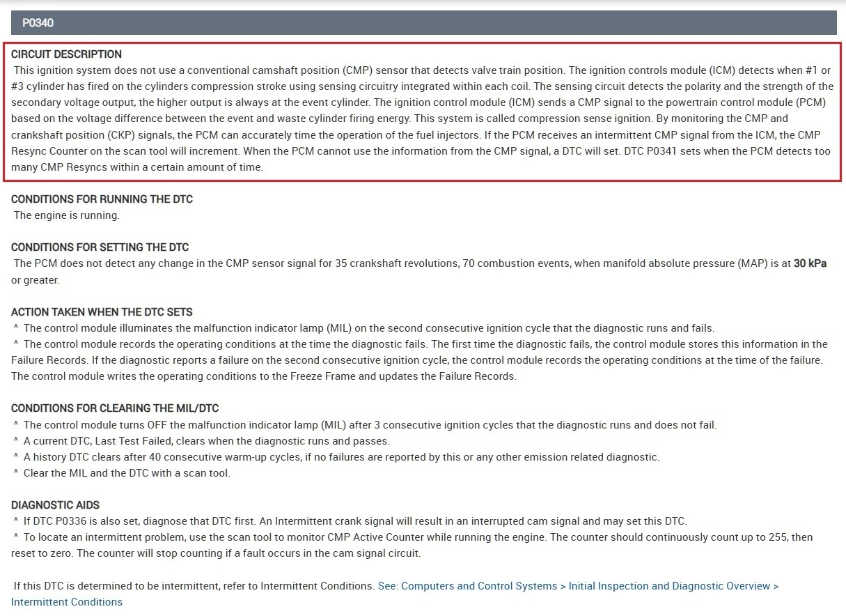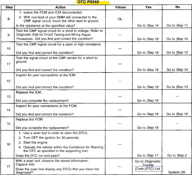 There is a flow chart you can go through for testing, this can be a fault with the ICM, the wiring between the ICM and ECM, or a failed ECM. The flow chart steps are mostly with a scan tool to monitor the cam signal counts, and a multimeter to check for the correct duty cycle of the cam signal, checking for a short to ground on that signal wire, but there doesn't appear to be any physical cam sensor that can be replaced. If you are comfortable with wire testing, Ill post the flow chart and we can help with walking you through some of the testing if you have questions about certain methods.