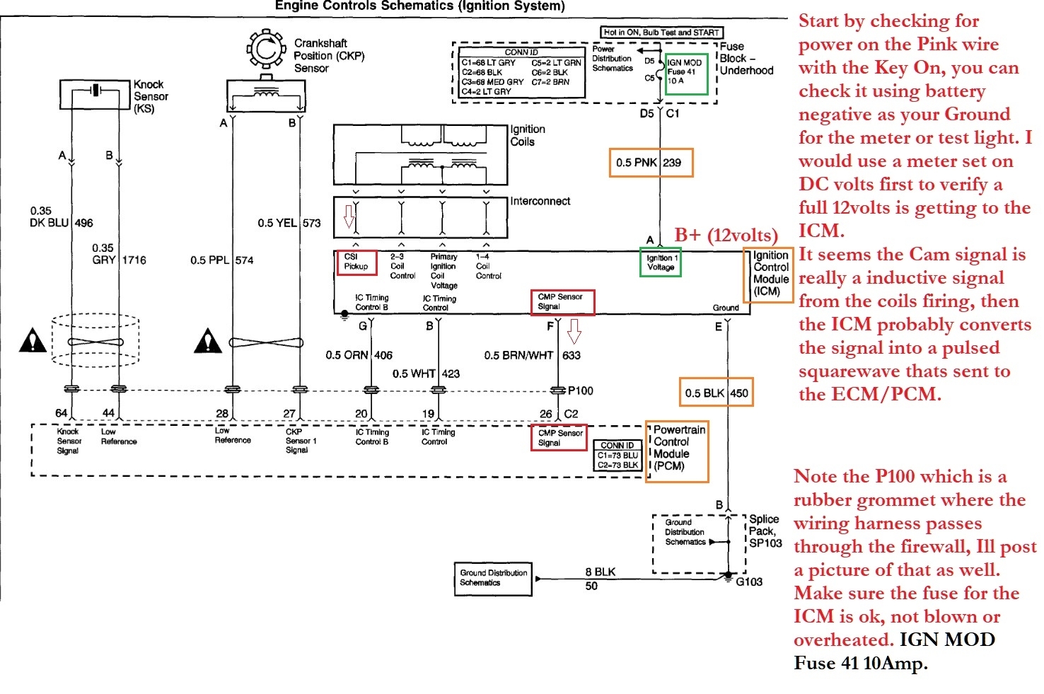 Hello, this system is not a conventional setup with a crank and cam sensor for ignition and injector timing, it does have a crank sensor, but the cam signal is actually calculated through the ignition control module (ICM) monitoring spark using "sensing circuitry integrated within each coil". That is directly from service information, which Ill post the theory and operations for you. The "cam" signal is then sent out from the ICM to the engine computer (ECM) where it uses the crank and this cam signal to determine timing.