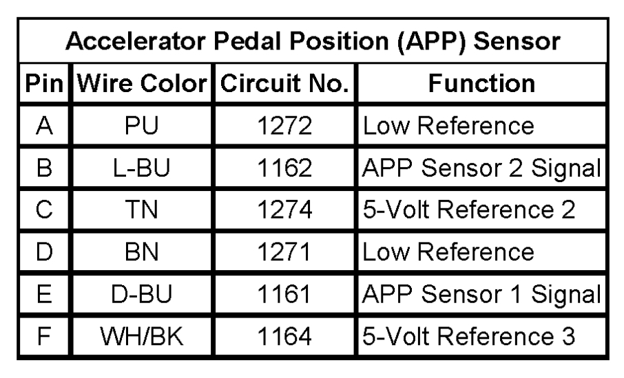 My wires were cut on my accelerator position sensor, and I need a diagram so it with color coded so that I can put my wiring back together at my gas pedal.