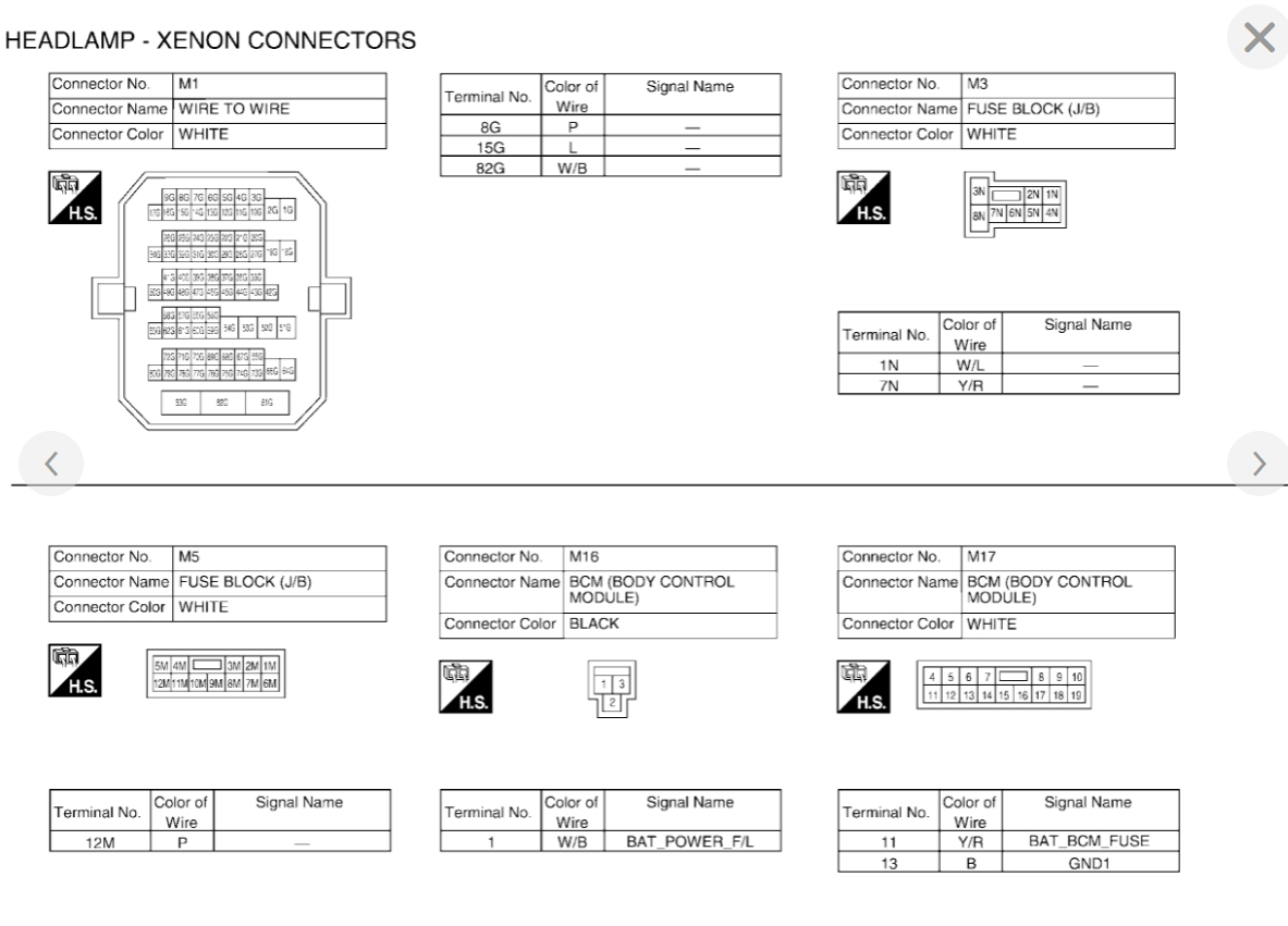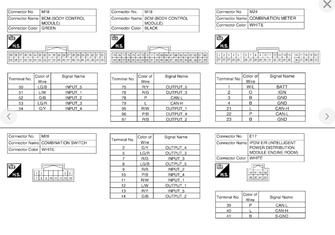 Also included the pinout diagrams which shows the color of the wire and number of the connectors.
