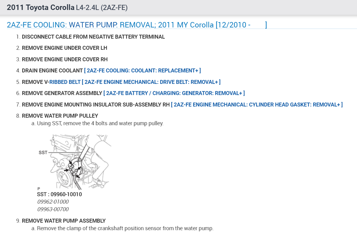 I'm looking for a car and found a 2011 Toyota Corolla but it is salvage it was crashed and the bumper, lights, hood, and I need to change out the water pump? Please reply