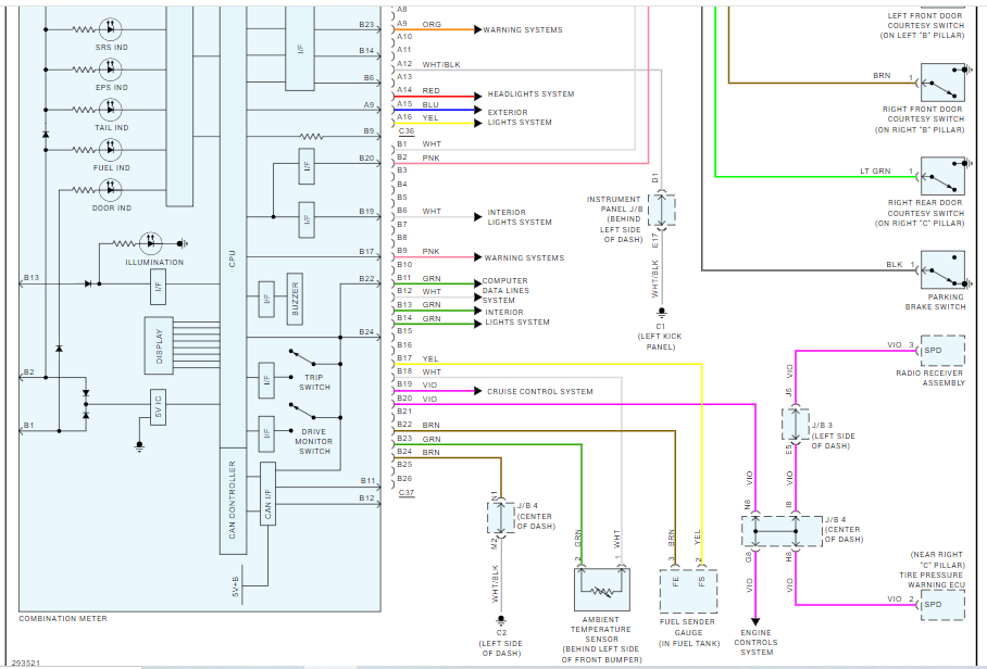 As far as the instrument cluster, I attached what I have. Take a look at it and let me know if it helps. Also, I had to cut the pic in two to make it readable. I did overlap the two so you can follow from one to the next.