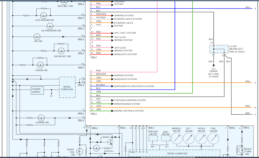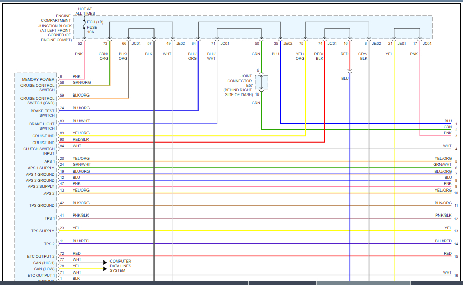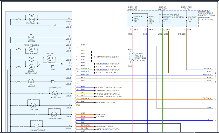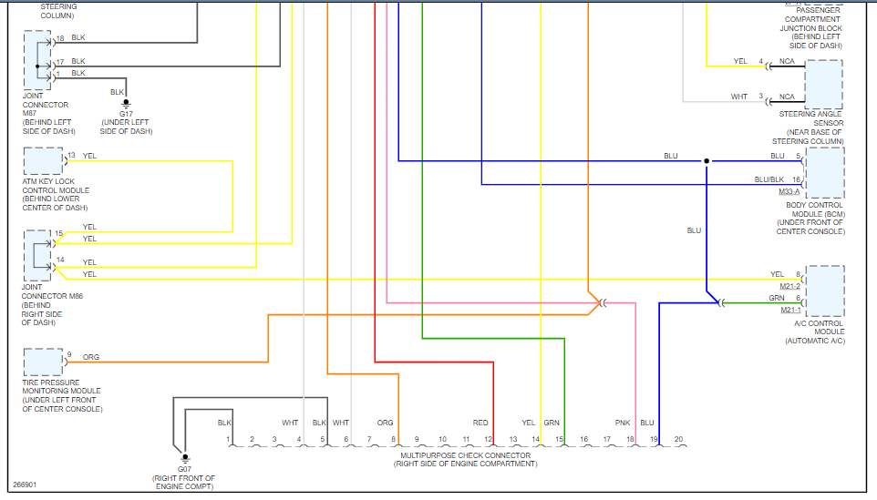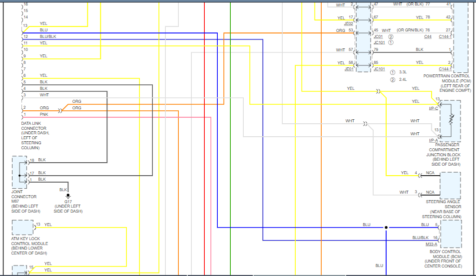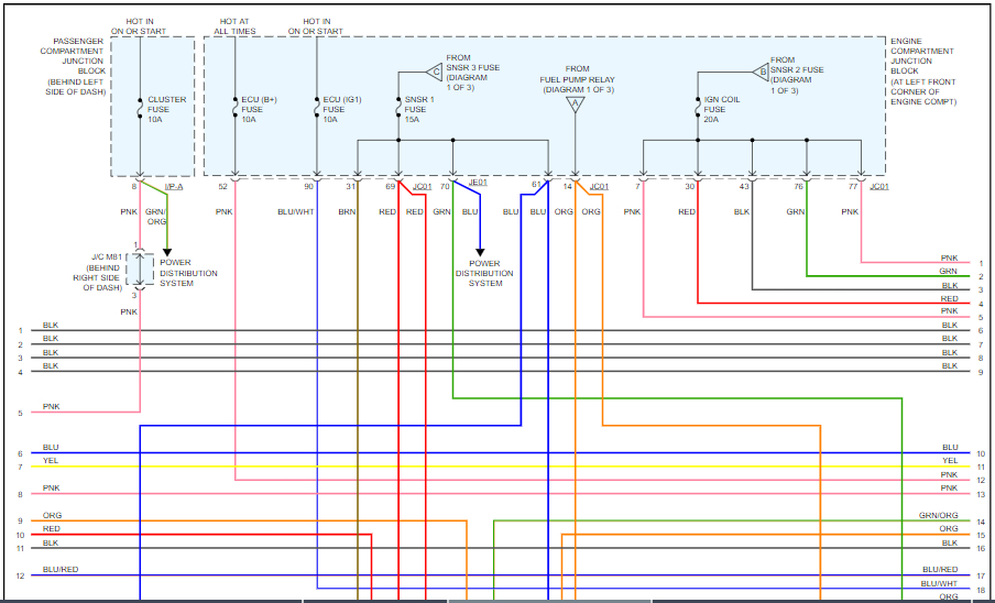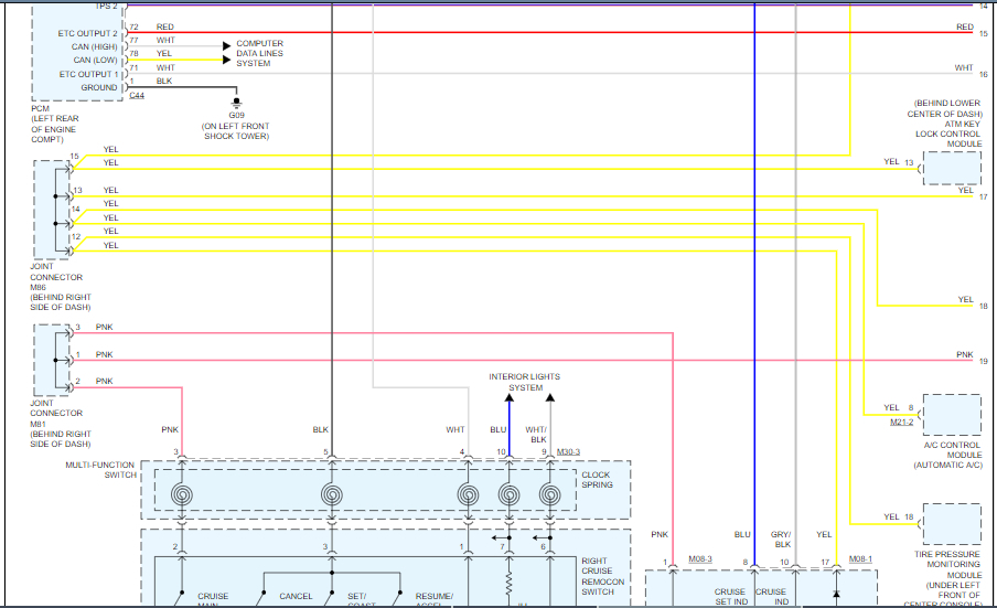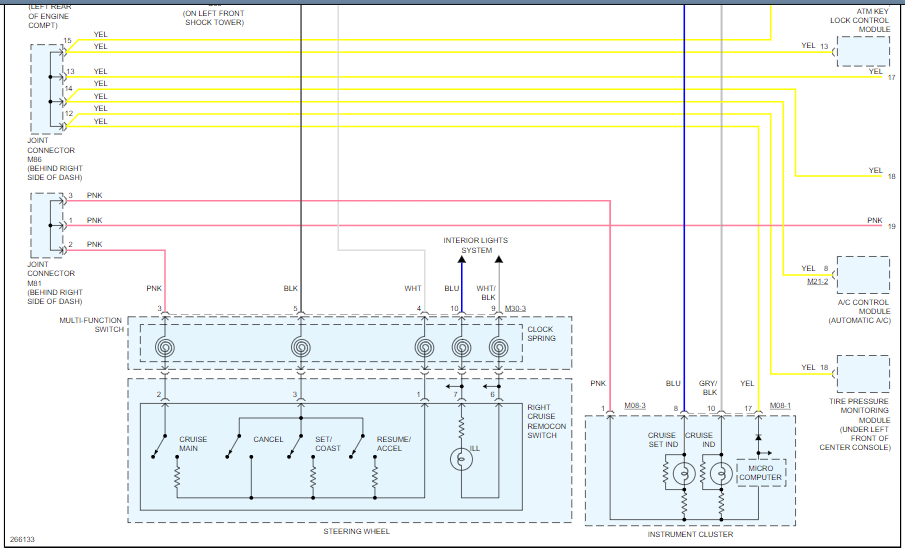 Here is the clock spring diagram you requested. I've cut it into 3 pieces so you can view larger. I've also attached a picture of M81 joint connector which is located behind right side of dash. Hope this helps and thanks again for using 2CarPros.