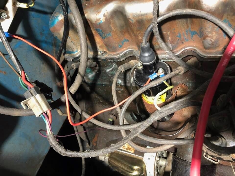 I have one more tidbit of great value. AMC used the Ford-style starter solenoid that sits up on the inner fender near the battery. There are multiple versions of those, and they all look the same. All use the two large terminals, one goes to the battery positive post, and the other goes down to the starter. That is the only wire on the starter.
