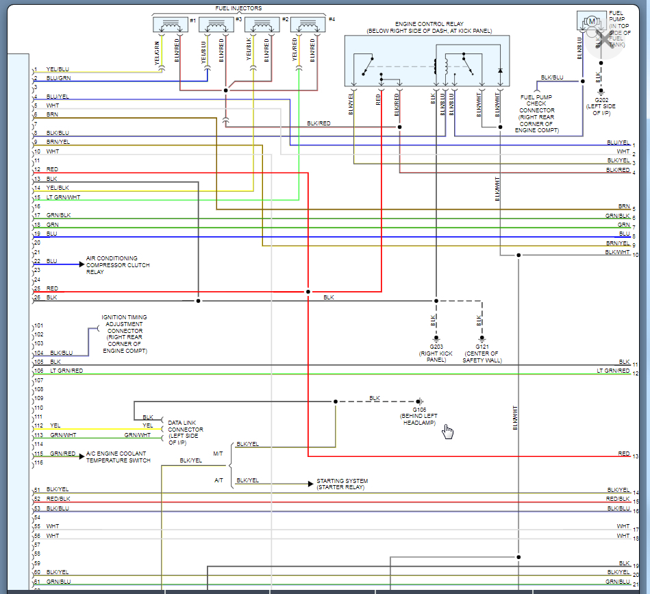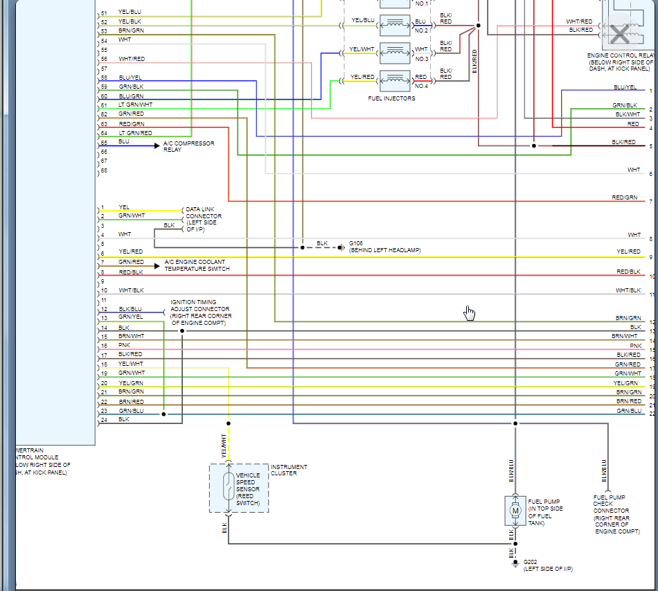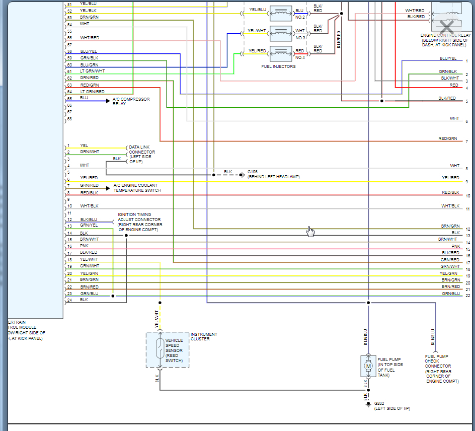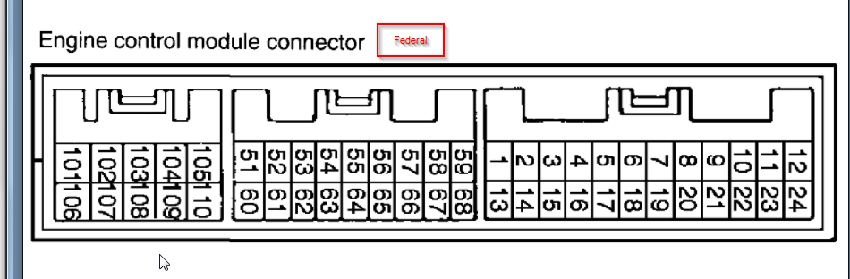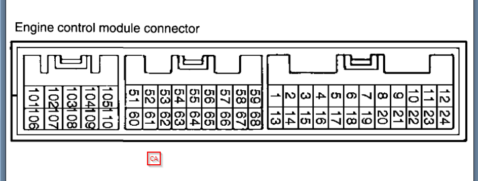 So I included the complete wiring diagram for the PCM so you can see what each pin goes to and then you can identify which pin that is in the connector.