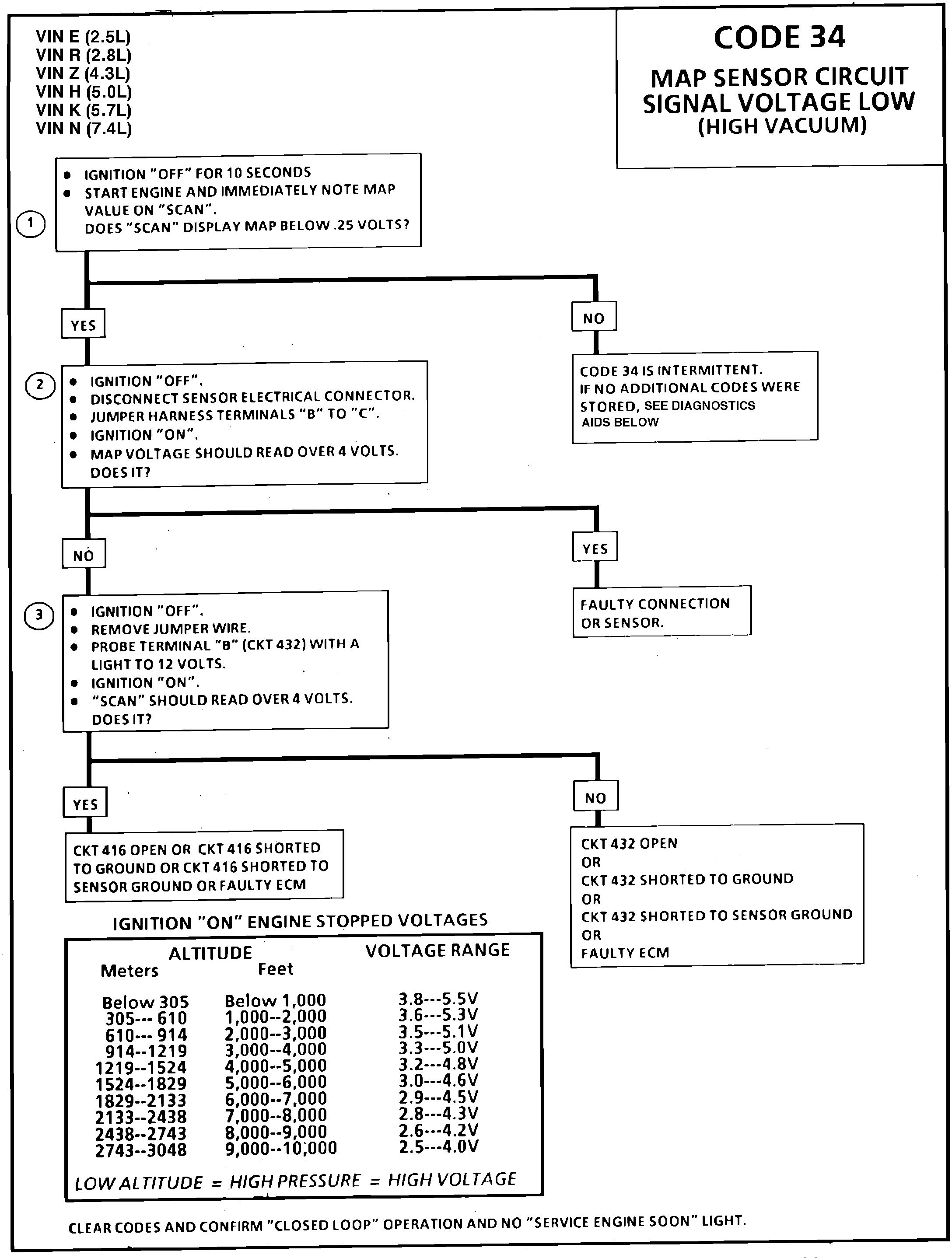 Code 34 - MAP Sensor Circuit Signal Voltage Low (High Vacuum)