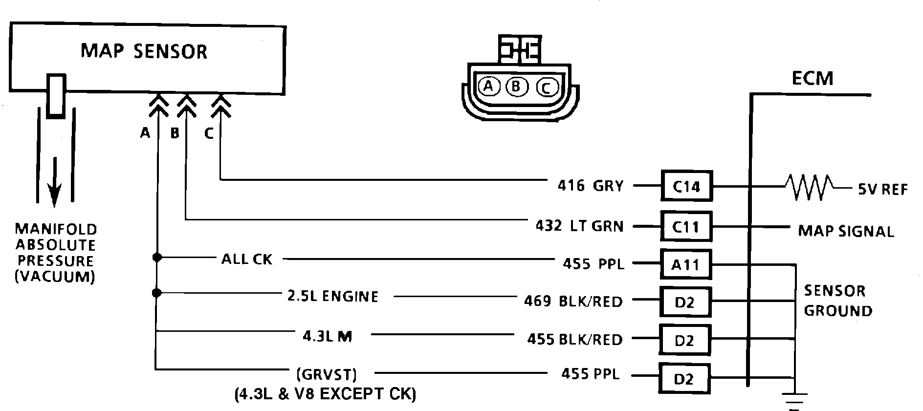 Wiring Diagram For Code 34 - MAP Sensor Circuit Signal Voltage Low (High Vacuum)