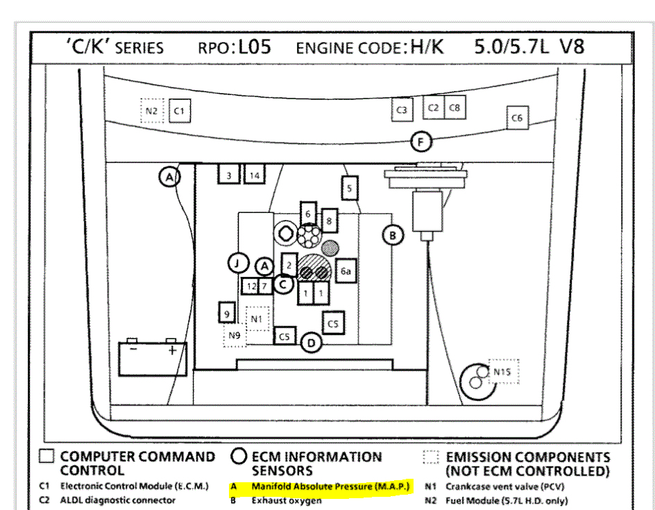If the MAP sensor fails the ECM will substitute a fixed value and use the throttle position sensor (TPS) to control fuel delivery.