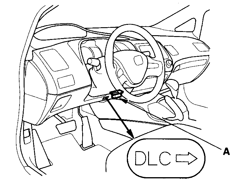 2. Connect the HDS to the data link connector (DLC) (A) located under the driver's side of the dashboard.