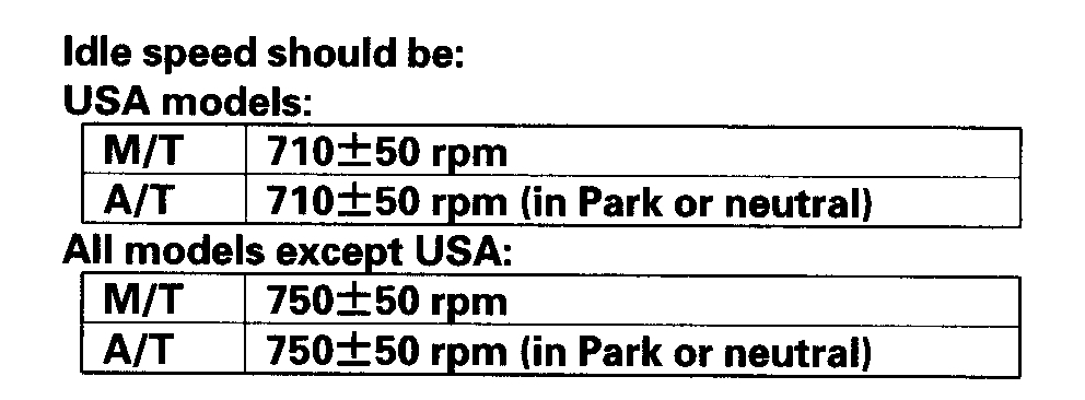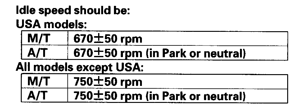5. Check the idle speed without load conditions: headlights, blower fan, radiator fan, and air conditioner off.
