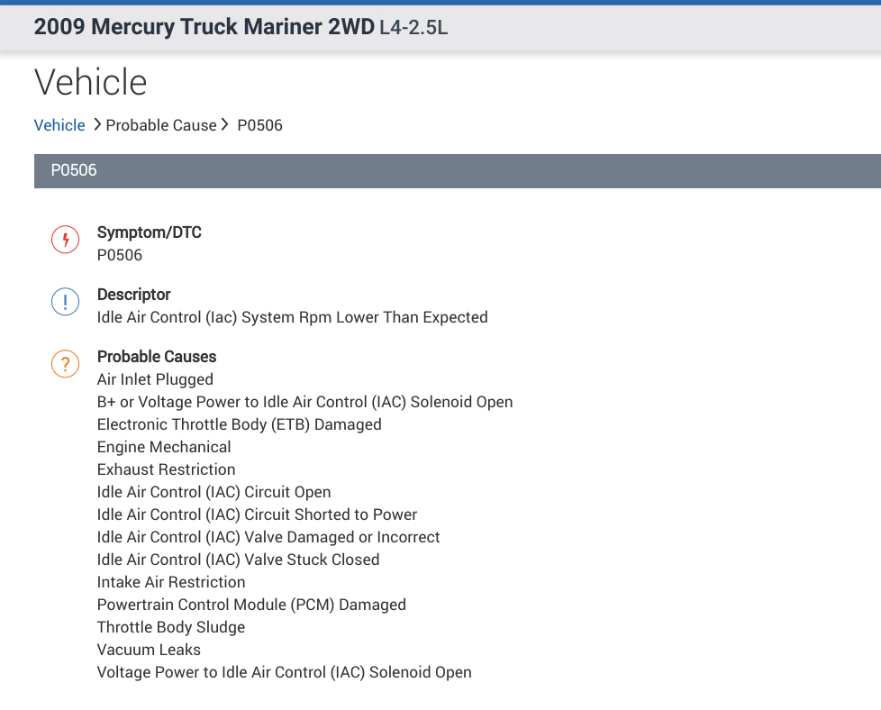 In the diagrams down below I have included a possible list of things that could be causing the problem. So let's start at the top and inspect the air intake tract up to the throttle body and make sure that the air filter doesn't need to be changed. Please get back to us with what you find out and we can go from there, if needed.
