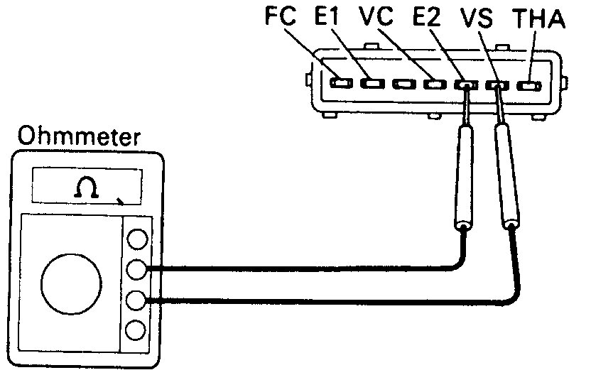 NOTE: Resistance between terminals E2 and VS will change in a wave pattern as the measuring plate slowly opens.