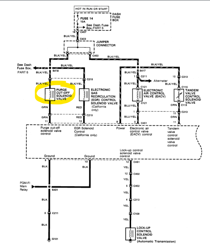 We usually use a smoke machine for vacuum leaks, but here's a guide for diagnosing a vacuum leak. We have limited wiring diagrams for a vehicle this old. but also try unplugging the purge valve and blocking off its tube to the intake manifold, do the same with the brake booster hose.