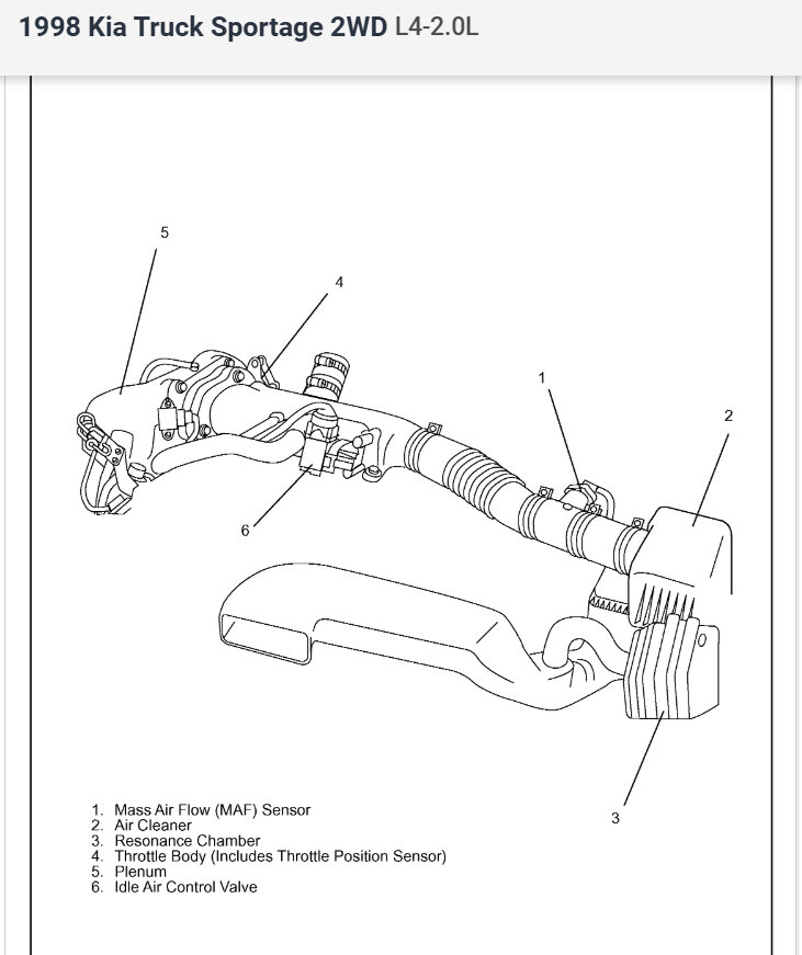 As I said, the long plastic air intake (to left of item #3 in your pic) is all busted. Would this cause the problem? Gail