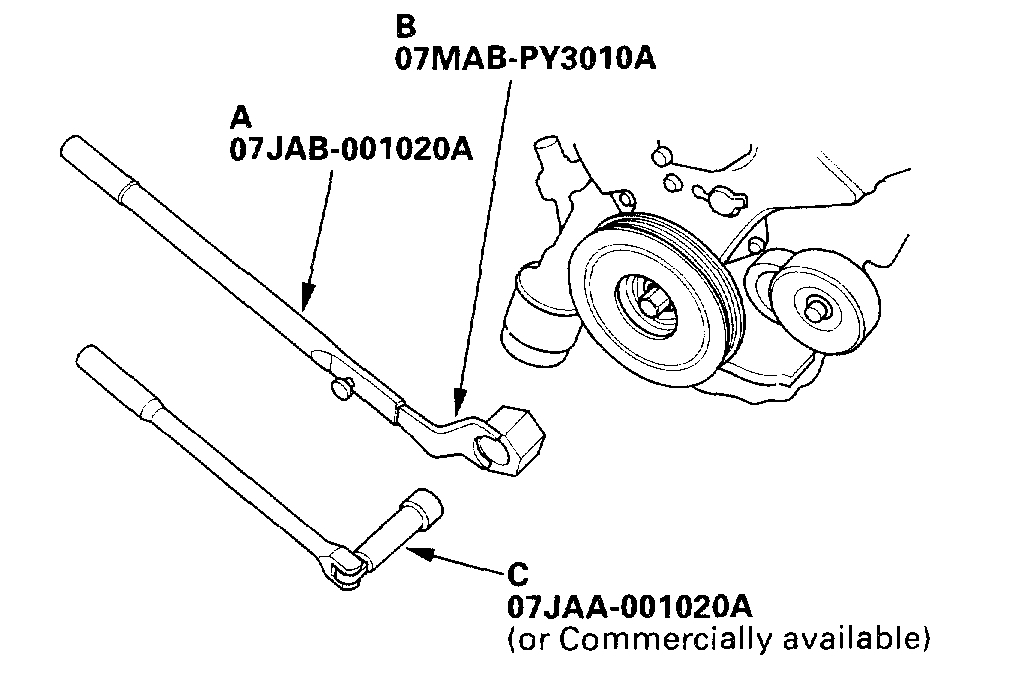 11. Remove the bolt with a heavy duty 19 mm socket (C) and breaker bar.