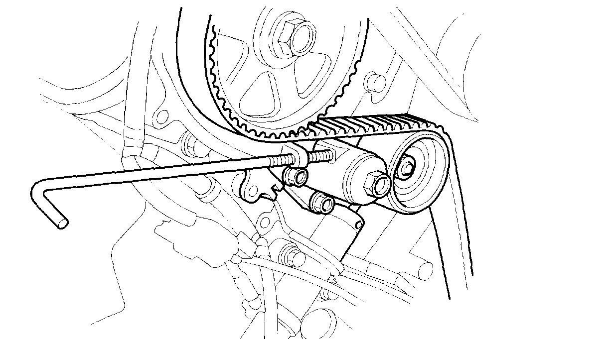 4. If the auto-tensioner has extended and the timing belt cannot be installed, remove and compress the auto-tensioner.
