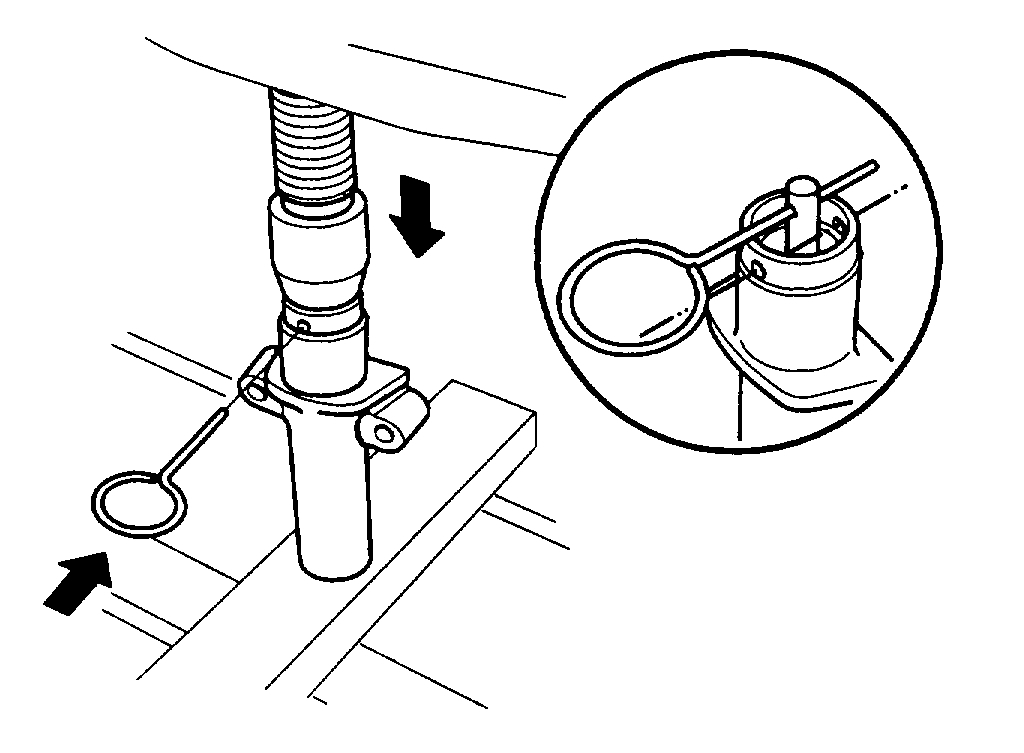 7. Use a hydraulic press to slowly compress the auto tensioner. Insert a 2.0 mm (0.08 inch) pin through the housing and the rod.