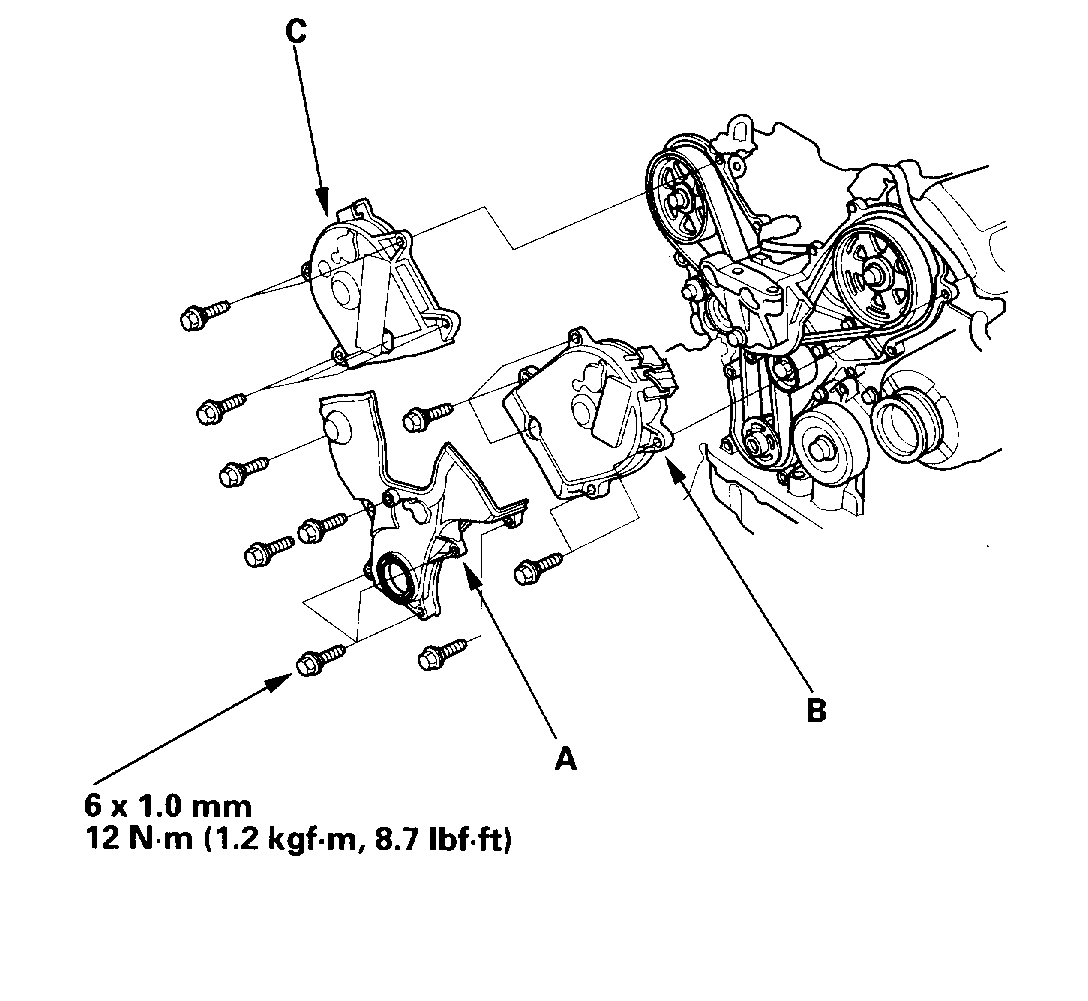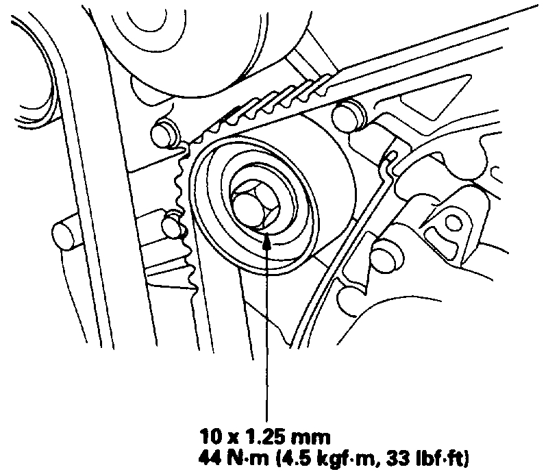 11. Install the crankshaft pulley, and tighten the bolt to 245 Nm (25.0 kgf/cm, 181 ft. Lbs.). Do not use an impact wrench.