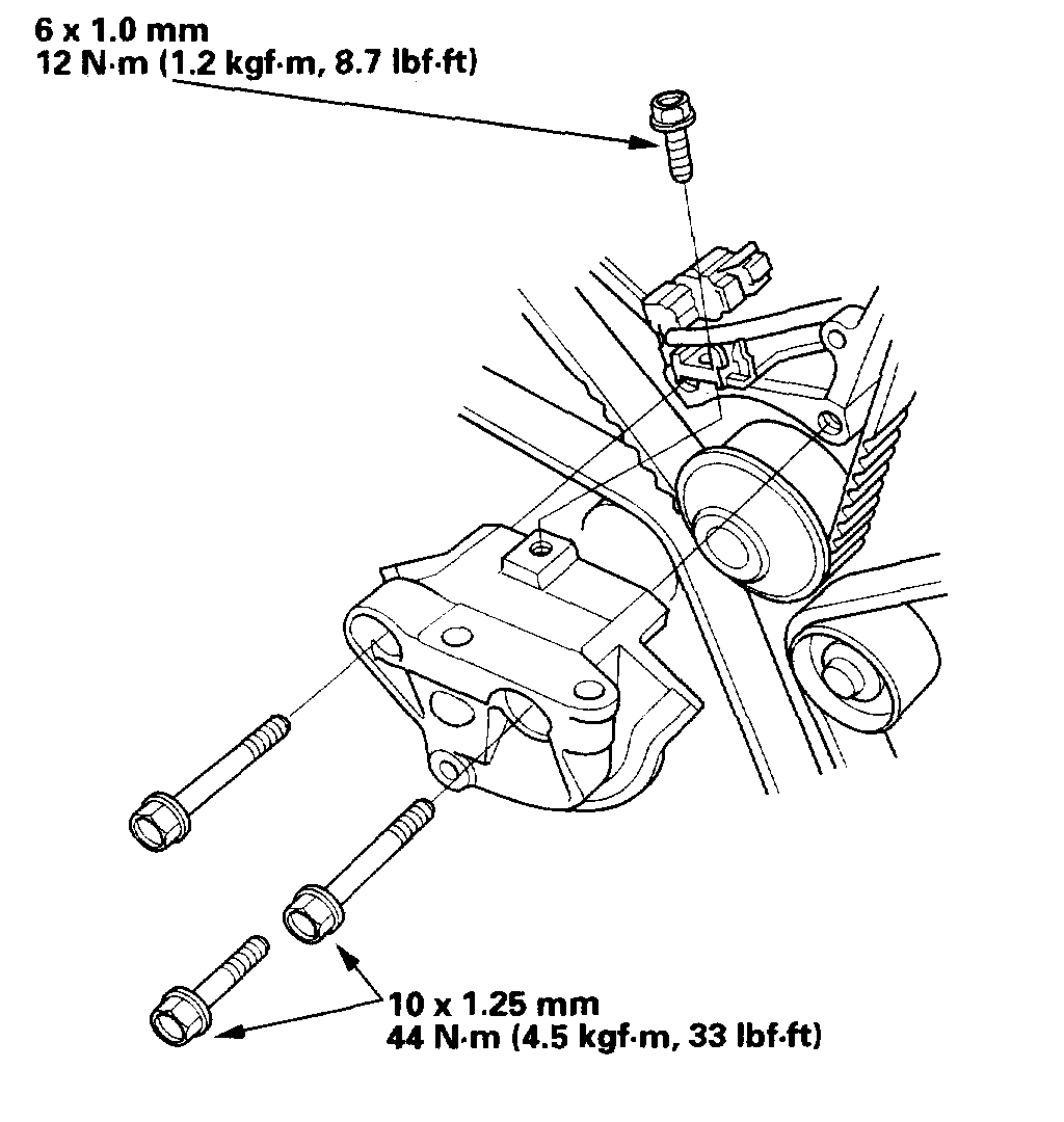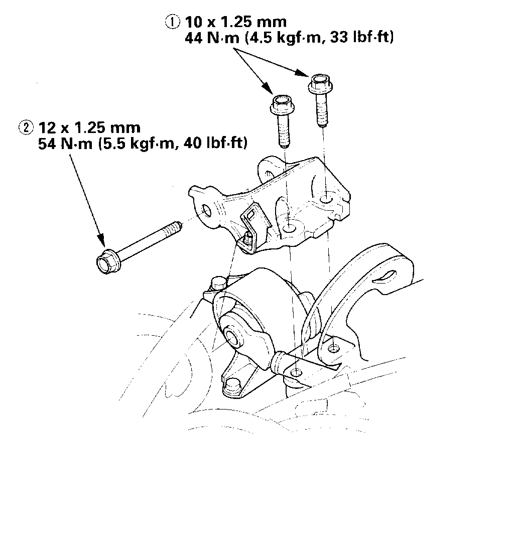 18. Install the side engine mount bracket, then tighten the mounting bolts in the numbered sequence.