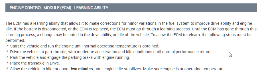 I attached the learn process that you can try to see if you can relearn the idle. Also, you may have a DTC and if you do, I attached the info for that.