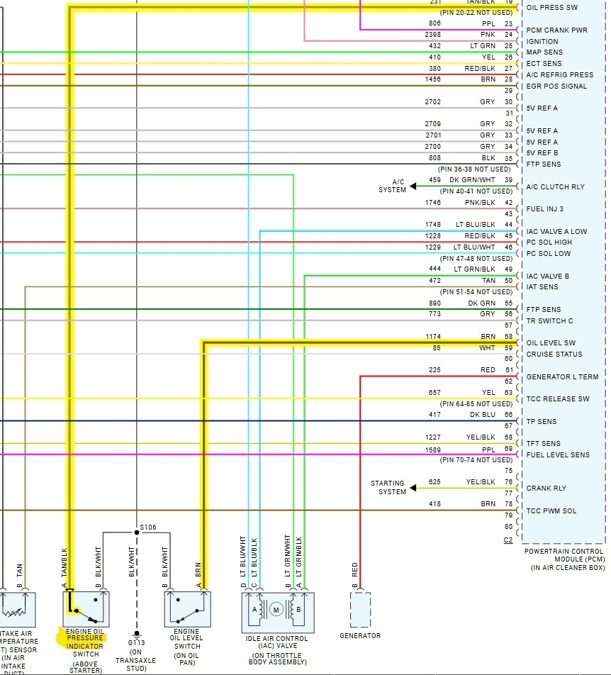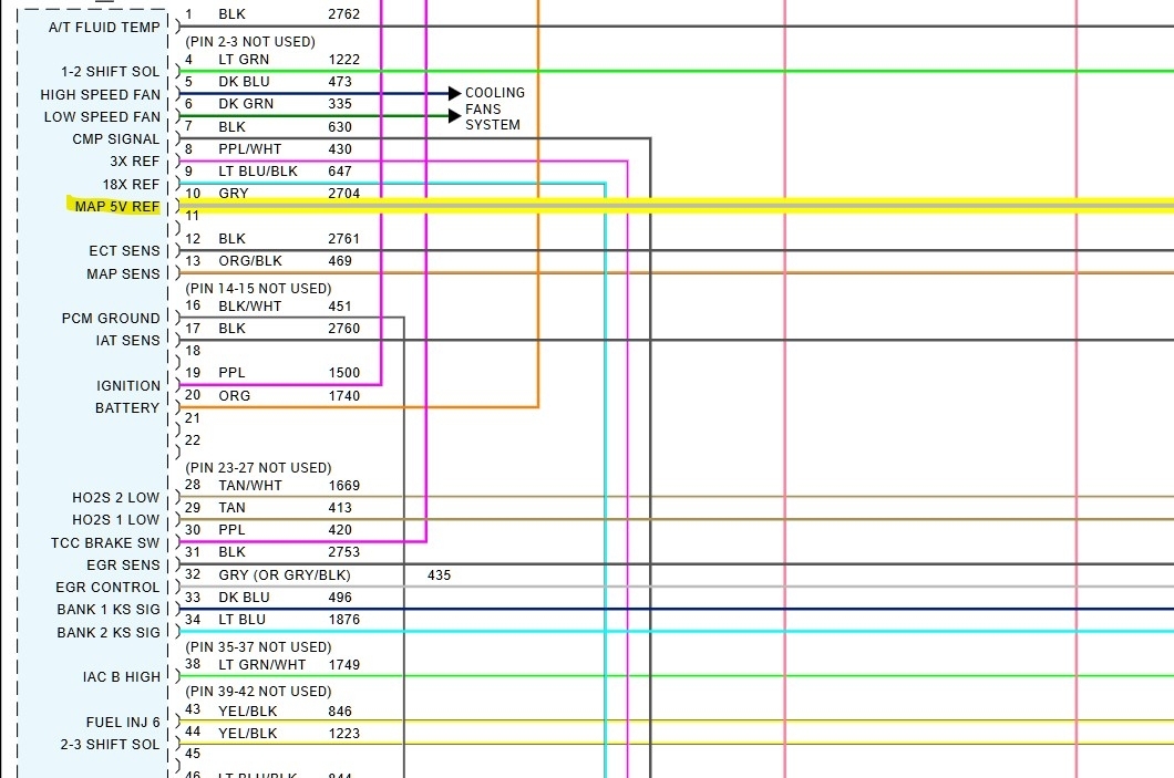 Theres just so much information here on many different signals, it's easy to get lost, but really this is where scope use would come in. You could have checked every signal to make sure it's a good square wave and pulling fully to ground and 5 volts. With a 4-channel scope you could look at 4 signals at once. It would make a huge difference when dealing with so many signals. But I'll find G111 for you. It's probably going to be an engine block ground, but I want to be sure.