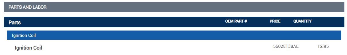 Here is the OEM Ignition Coil part number, the spark plug part number (they are NGK so it's a good plug) and the plug gap.