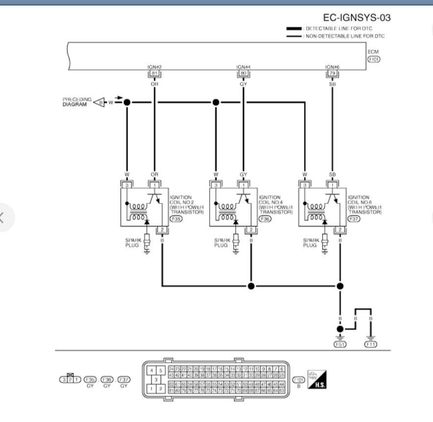 This vehicle burns all the cylinder ignition coils when you crank it, I first diagnosed it and there was no fault code stored. Then I unplug the ignition coil connector to check resistance on terminal 3 and 2 (power and ground) with ignition switch on, there was no resistance. Then I checked terminal 1 and 2 (igniter from ECM and ground) there was resistance or short to voltage. Could this be an ECM issue or wire problem? Though I suspect wire problem.