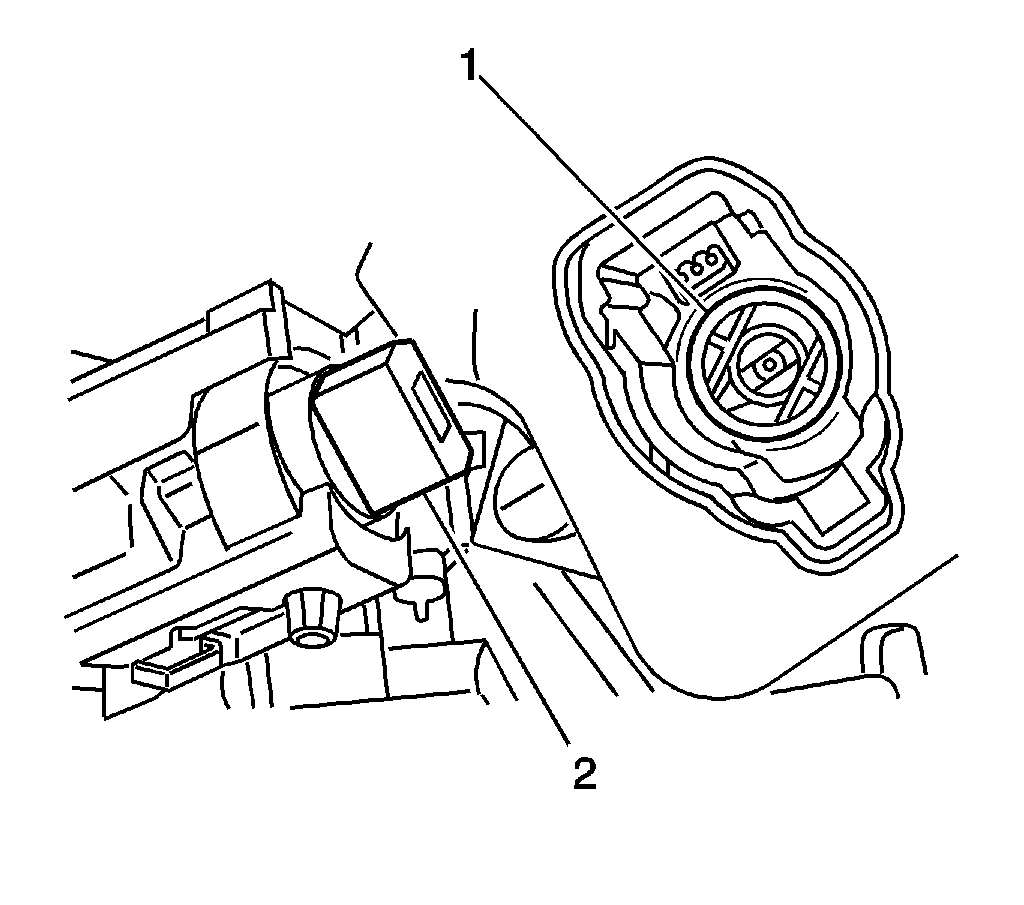 3. Position the lock cylinder to the ignition switch. Press the cylinder into place. If you turned the key slightly while removing the lock cylinder, you may have to align the white colored ignition switch rotor (1) with the lock cylinder (2). You can rotate the ignition switch rotor (1) with your finger.