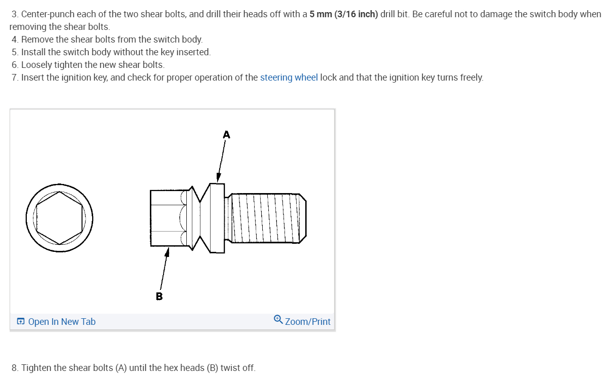 Hello, I have a high security ignition assembly that needs to be removed. Some online suggest a hammer and chisel. I'm hoping for an easier option to remove the two bald screws that hold the assembly on the steering column.