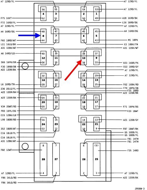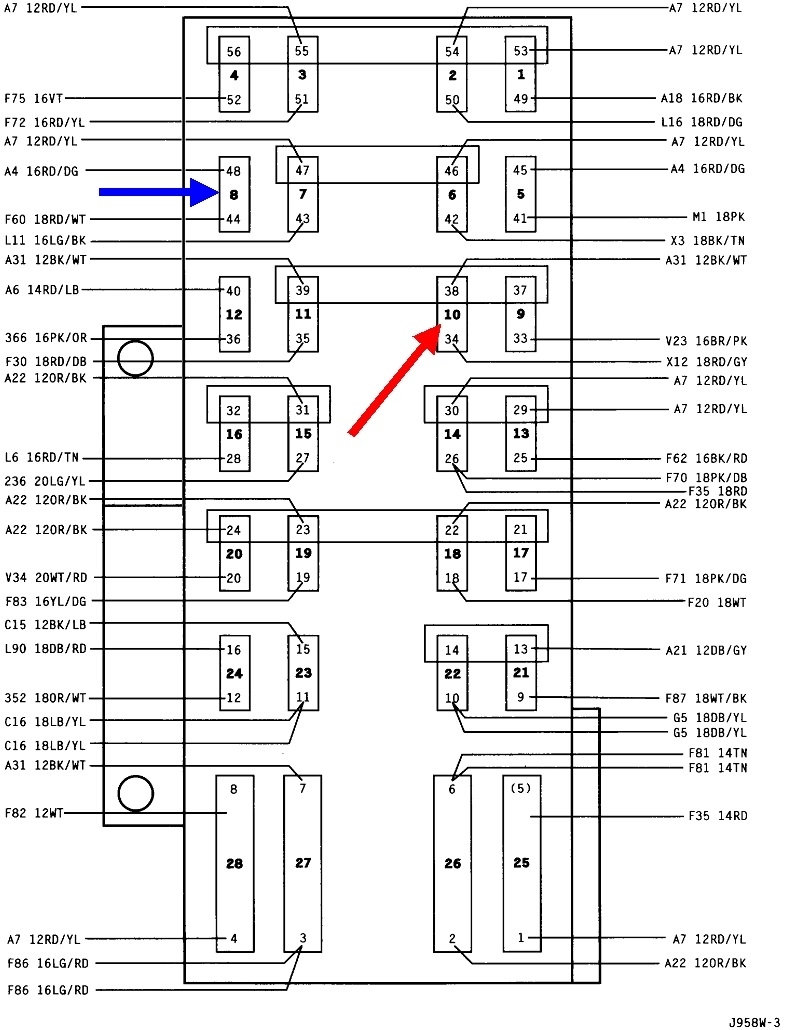 Those fuses have two tiny holes on top for test points. Use a test light or a digital voltmeter to test the two with the arrows. Here's links to some articles if you need more information: