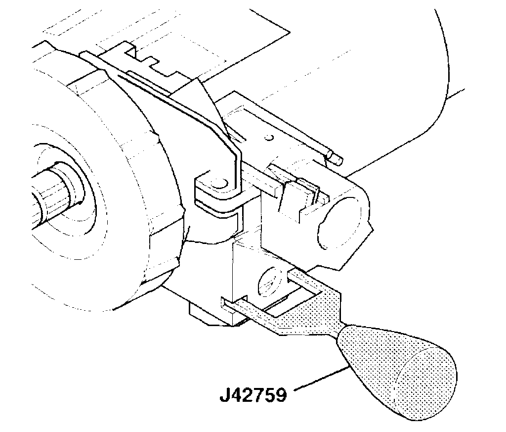 9. Insert J 42759 into the lock cylinder housing to release the tabs on the ignition switch.