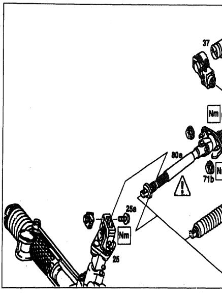 7. Push lock cylinder (36) into the steering lock. The recesses (arrow) in lock cylinder (36) must align with the recesses in the steering lock (arrow).