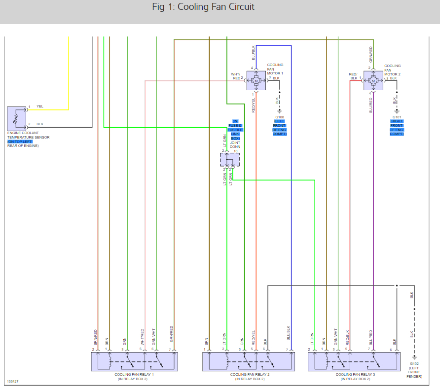 When I turn the ac on the fan does not turn on at any point and if sitting in traffic car begins to run hot. The main fan does run as its supposed to. Can it be the fan relay under the hood? There are three of them labeled fan relay 1, 2 and 3. Thanks