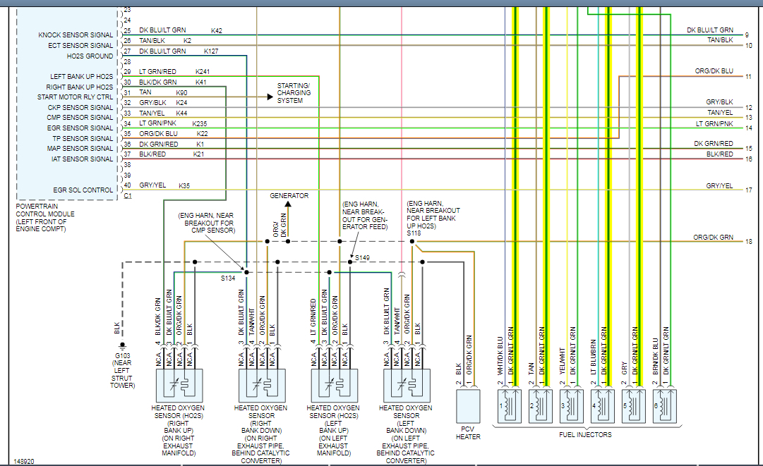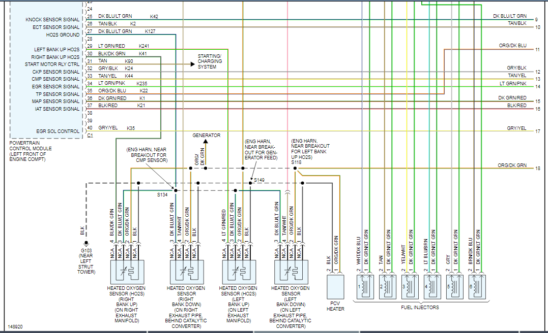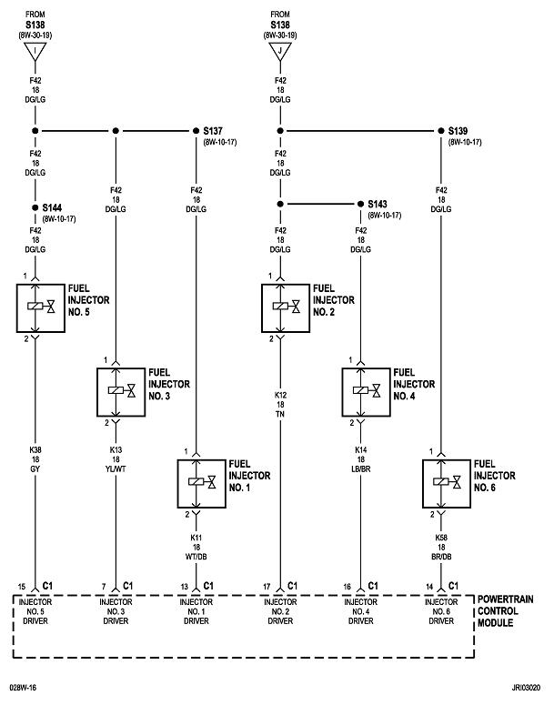 The first diagram has fuse # 24 circled. That feeds circuit F42 dark green / light green for the six injectors. The two circuits are continued on the second diagram at call outs "I" and "J". This is the circuit that has to be shorted for that fuse to blow.