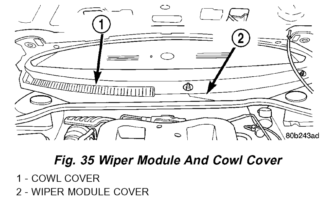 4. Remove the wiper module cover and cowl cover from the vehicle.