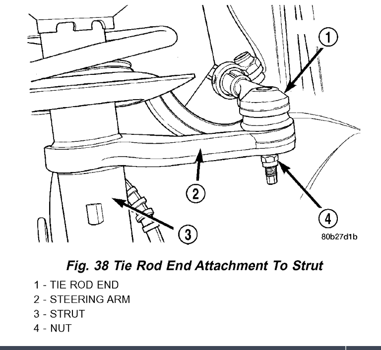 7. Tighten the outer tie rod steering arm nut to a torque of 37 Nm (27 ft. lbs.).