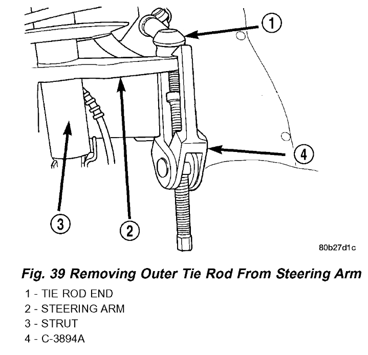 10. Remove the tie rod end from the steering arm of the strut using Puller, Special Tool C-3894-A.