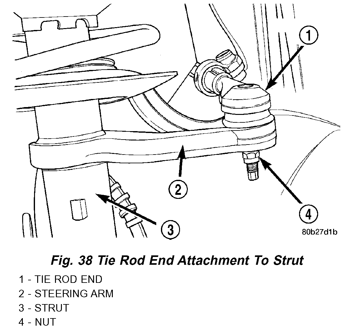 7. Tighten the outer tie rod steering arm nut to a torque of 37 Nm (27 ft. Lbs.).