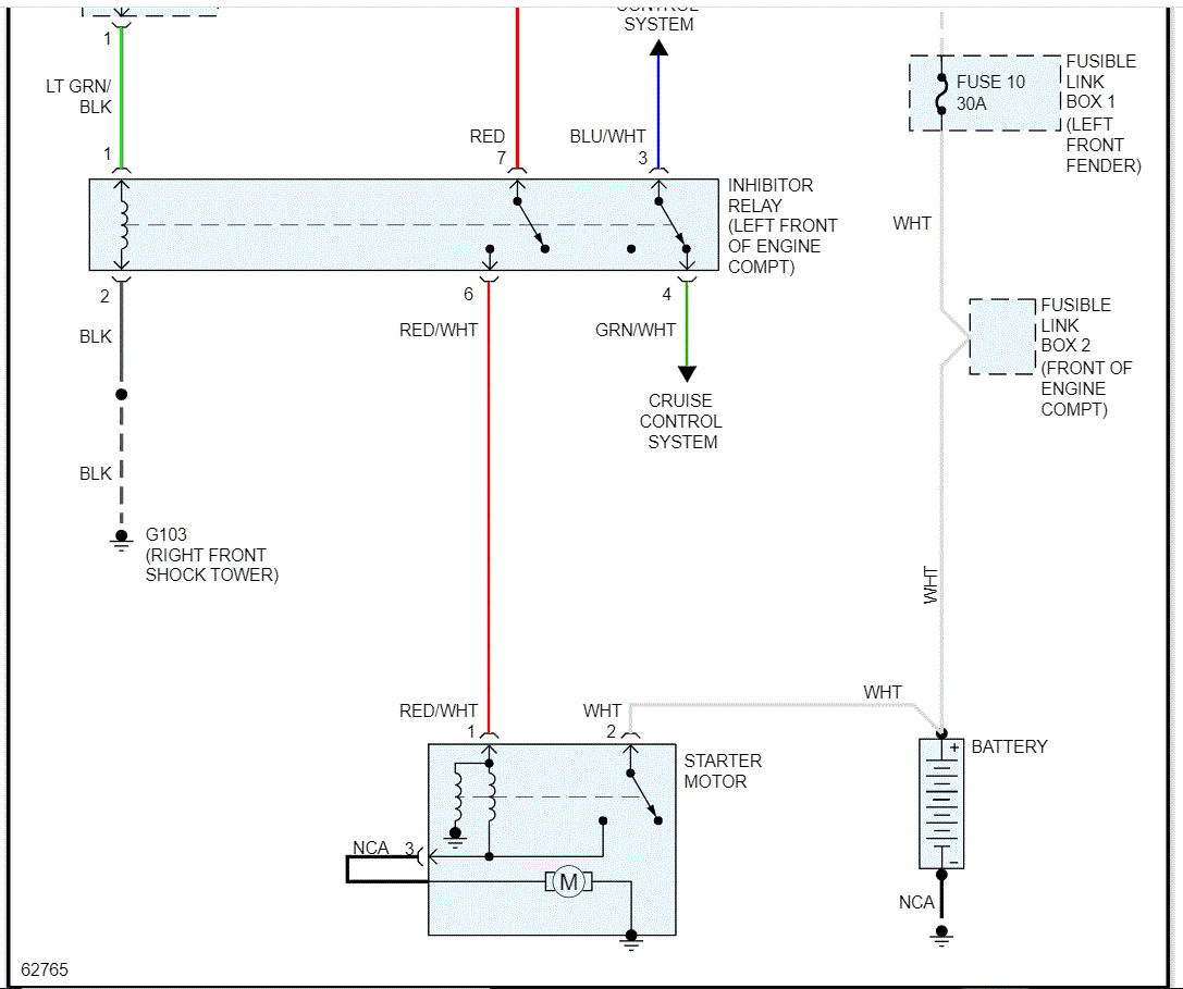 Since all power supplies are good and the battery is good, here is what I need you to do. At the starter, there will be a red wire with a white tracer. That wire has no power to it until the key is in the start position.