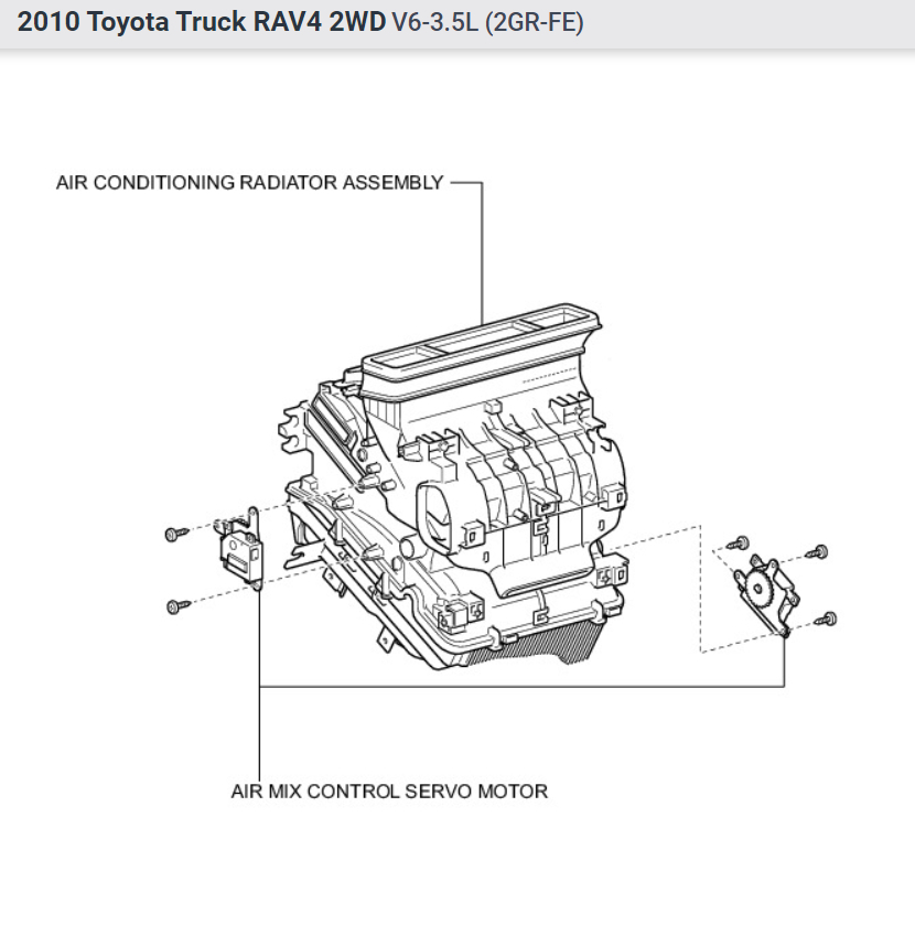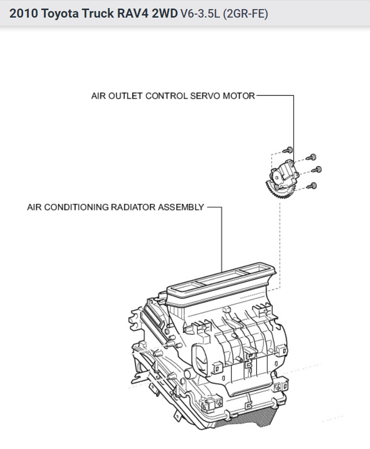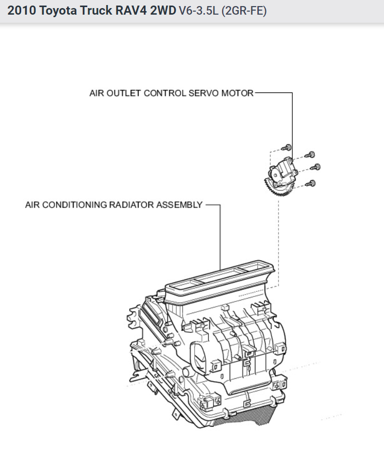 I have the actuator out. My question is, do I need to line the gears up when I install the new part? And if I do need to how is it done? Okay, I have the actuator in and it s working. I compared the 2 gears and saw where they matched up, but I m still not getting hot air out of the passenger side air vents! What else could it be? I did check with the dealership and they told me there was only one actuator in a 2010 Toyota Venza. I get lots of air out the vents just not hot. Thank you, Nancy B