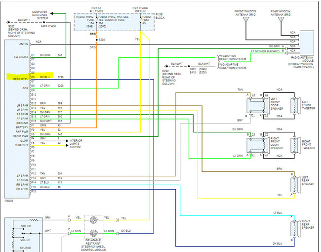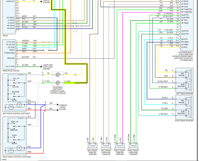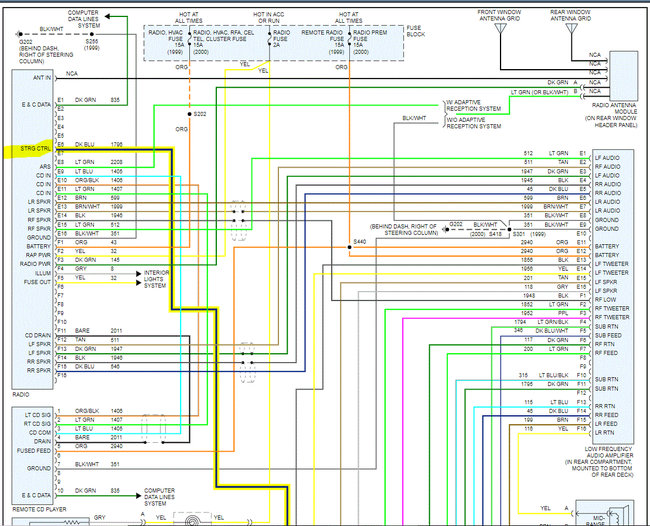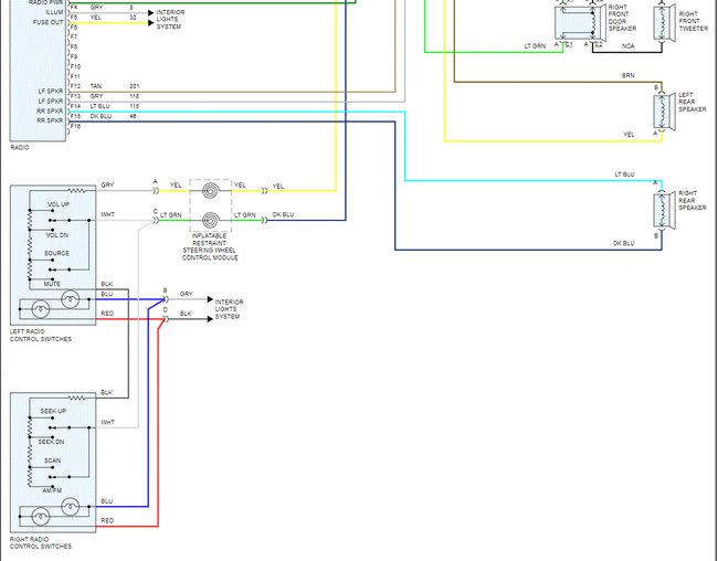 I attached the wiring schematics below for the two radio options the vehicle came with. One had a power amp and the other didn't. Note that each system was one page long. I had to cut each in half to make them readable for you. I did overlap each so you can follow from one to the next.