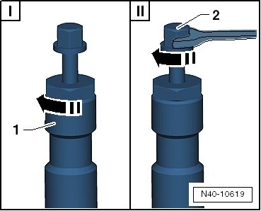 II Only turn the bolt - 2 - using a wrench and press out the drive axle using the Drive Shaft Remover (T10520).